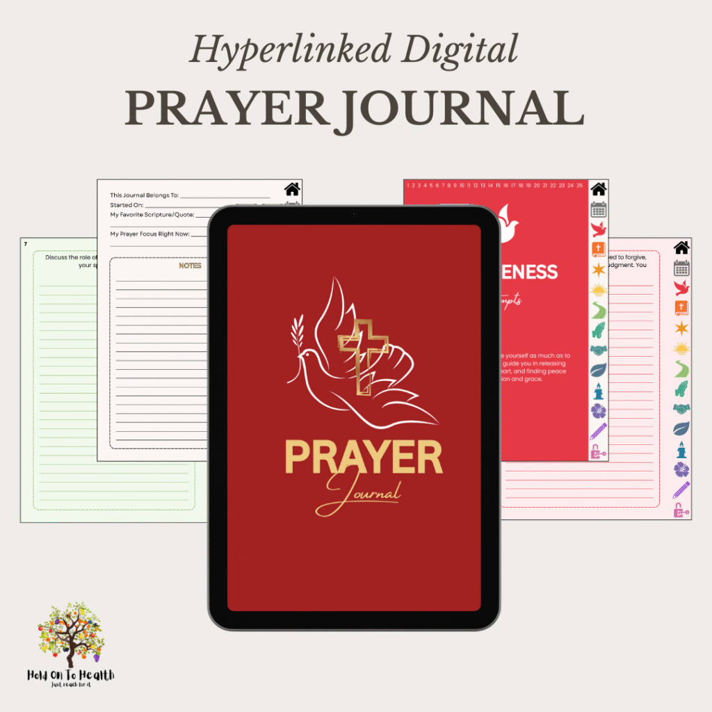 Strengthen your faith and deepen your spiritual practice with this beautifully designed digital Prayer Journal, featuring 300+ guided prompts for prayer, scripture reflection, gratitude, forgiveness, blessings, and more. Perfect for daily devotion, Bible study, or quiet reflection, it helps you grow closer to God and build a meaningful, consistent prayer routine — all in one easy-to-navigate, hyperlinked journal.
